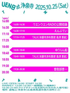 広島県の浄泉寺にて開催される、『UEN日 at 浄泉寺』への出演が決定しました。